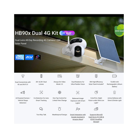 EZVIZ HB90x Dual 4G + WIFI Camera Solar Bundle (4MP)